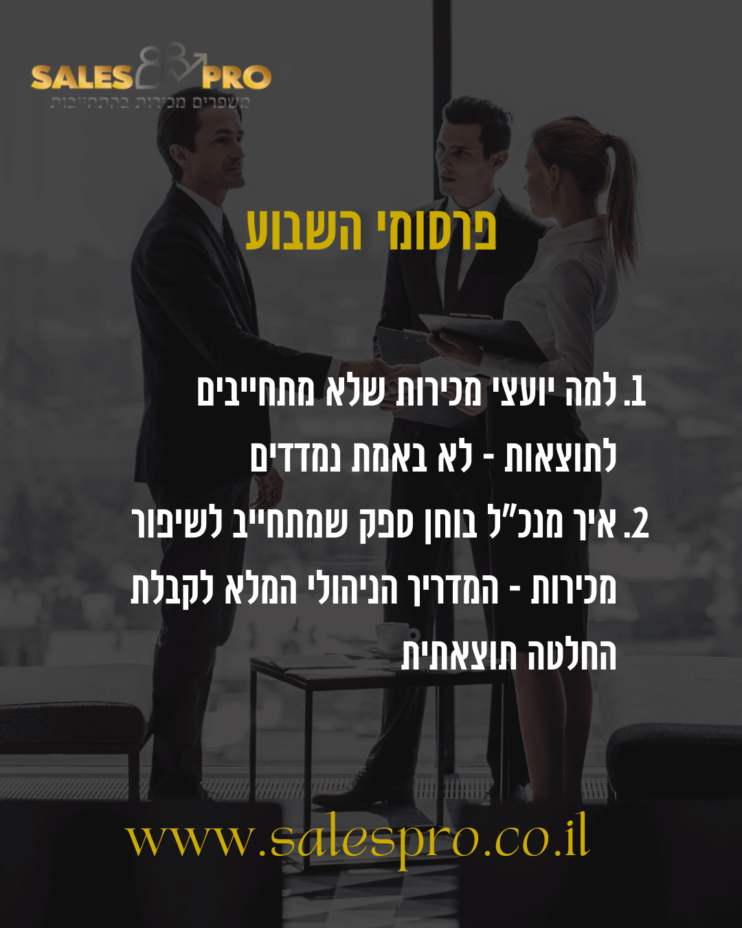 ניהול מכירות למנכ"לים ובכירים – מנגנון ניהולי קריטי ולא רק פונקציה תפעולית